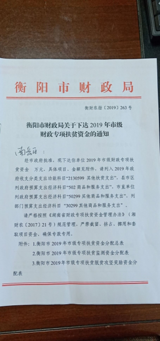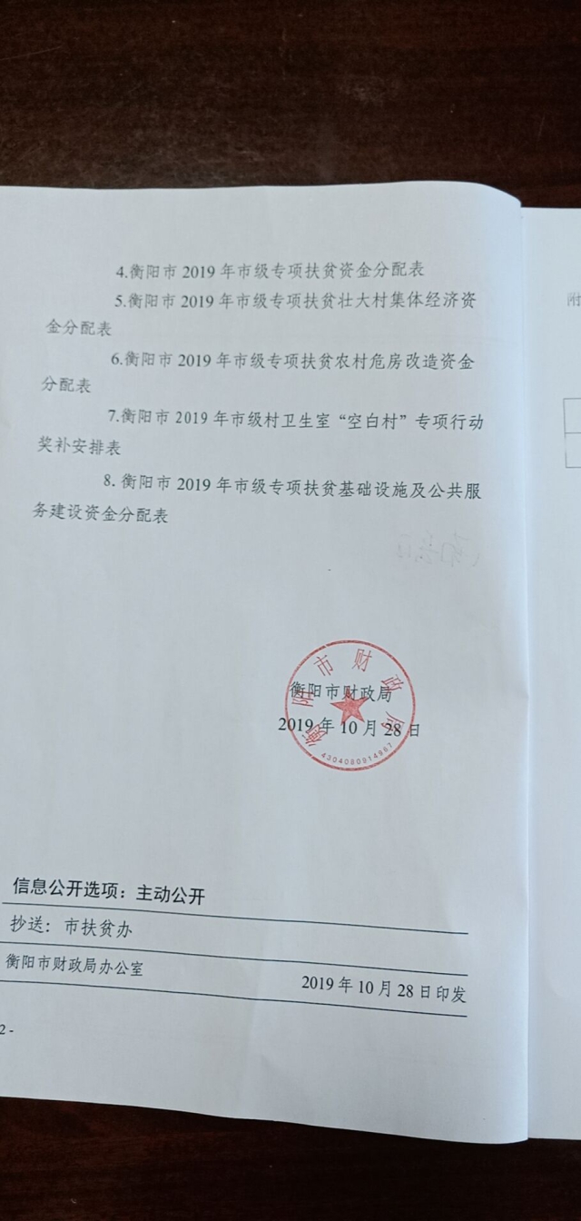 衡阳市下达2019年市级财政专项扶贫资金