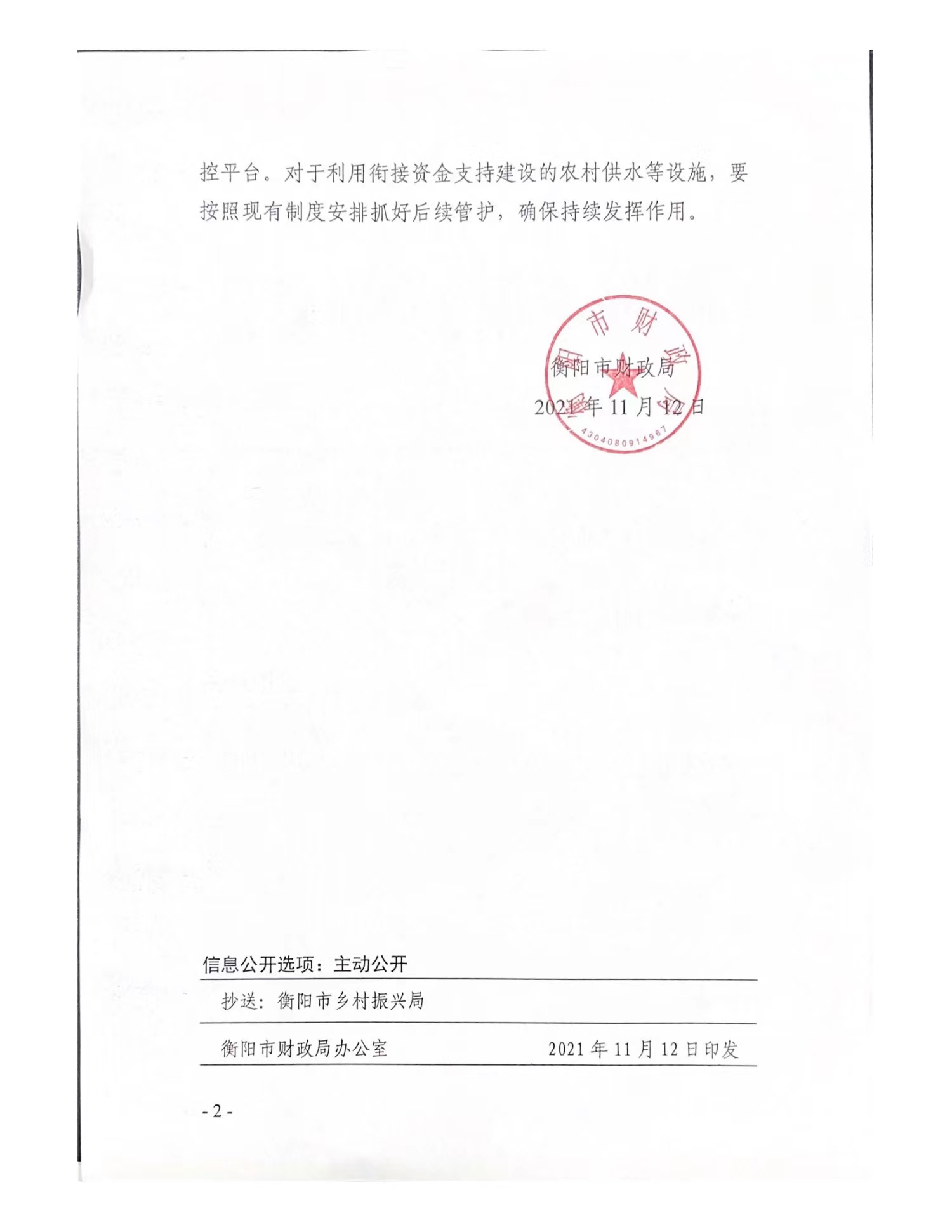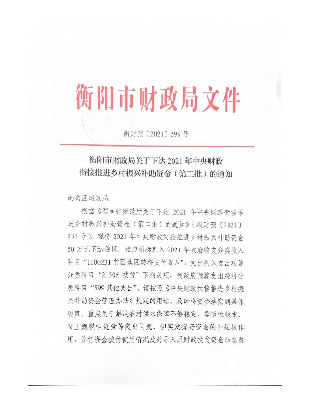 转发:衡阳市财政局关于下达2021年中央财政衔接推进乡村振兴补助资金(第二批)的通知