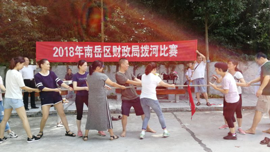 为丰富全体干部职工的精神文化生活,增强爱我名山意识,丰富广大干部职工业余生活,促进干部职工之间的交流,发扬财政精神,增强团队凝聚力,7月14日南岳区财政局工会组织开展“爱我南岳、登山赏景”活动,并在南岳树木园举办干部职工拔河比赛。
