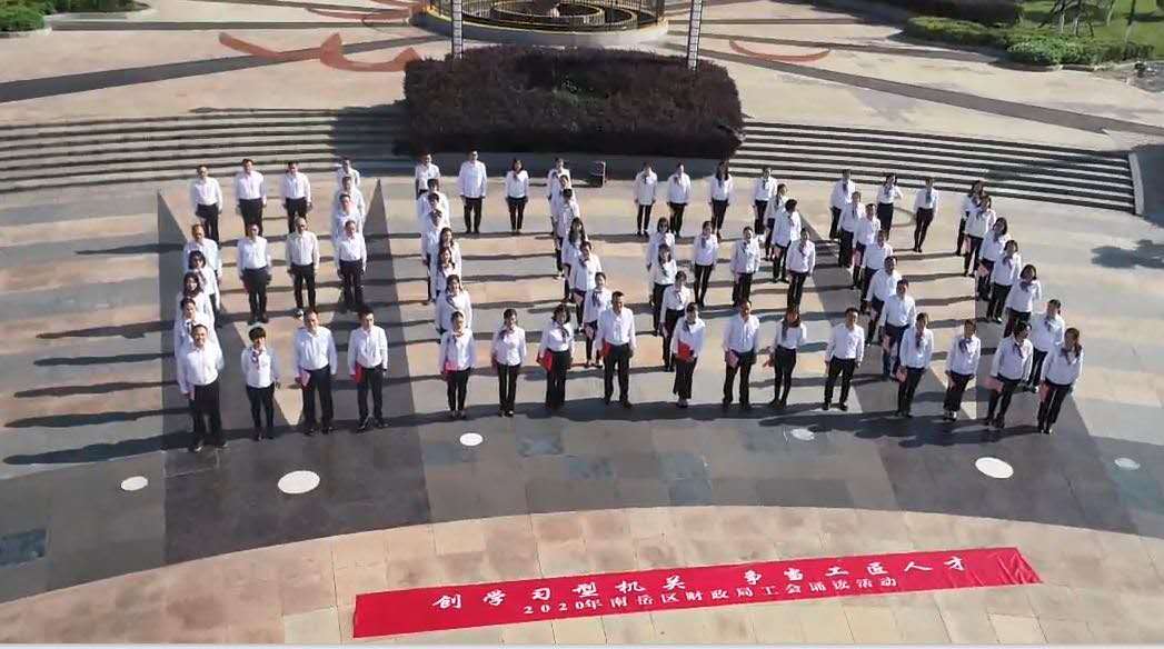 衡山脚下,天子山前,黑白分明的队伍整齐划一,排列成“2020”的队形,吸引了不少人的注目。原来是区财政局组织工会会员在开展“创学习型机关,争当工匠人才”集体诵读活动。