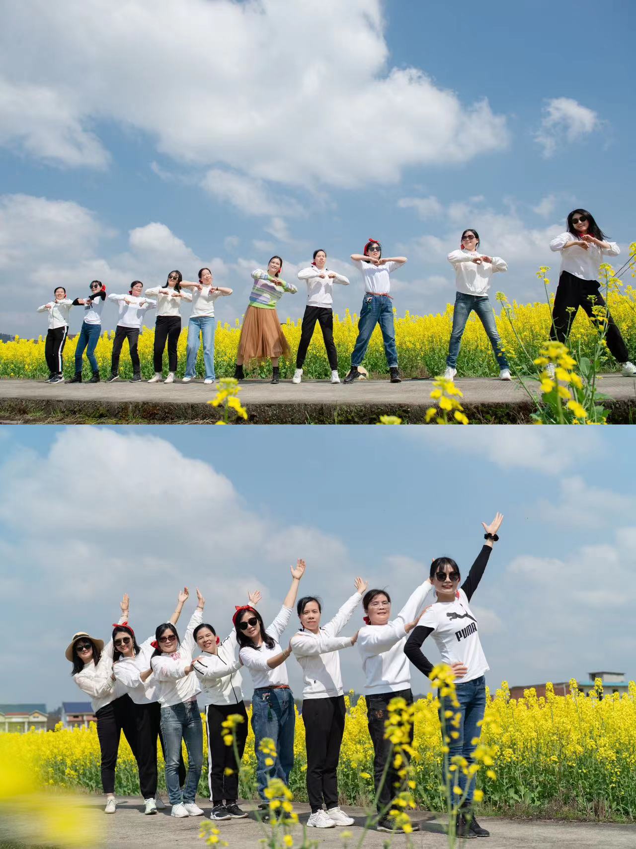 随后,在酒埠江千亩油菜花田,借助天时地利开展一次短视频拍摄比赛。满目金黄香百里,巾帼英姿竞芬芳,姑娘们三五成群,自信灿烂展现风采,靓丽倩影与花田美景交相辉映,欢声笑语和烂漫春色定格在镜头里。