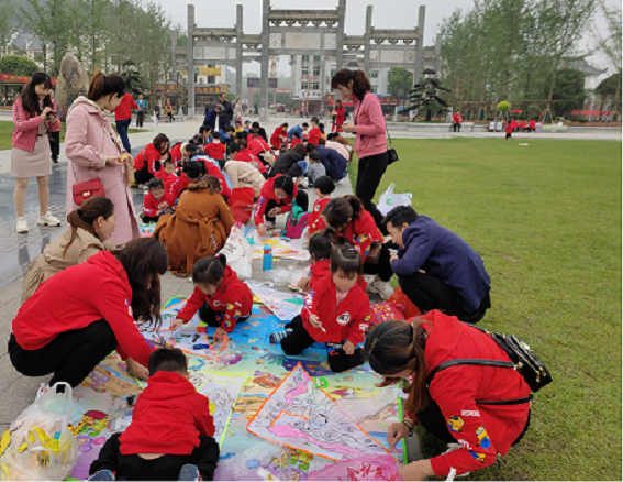 伴随着小朋友的歌声,这次放飞梦想亲子活动正式拉开了序幕,首先老师组织小朋友和家长们进行了精彩热烈的律动。随后,在家长陪伴下,小朋友在风筝上作画,用彩笔尽情描绘美丽的色彩,五彩斑斓的童心世界跃然纸上。