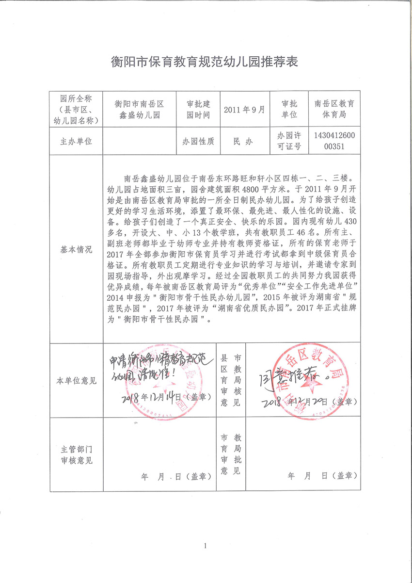 衡阳市保育教育规范幼儿园鑫盛幼儿园推荐公示