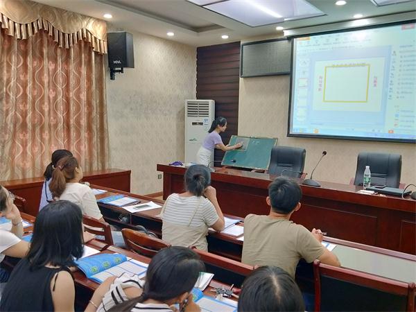 二是写校本课程字教学培训。“短横拳出击,长横宽展臂,多横排列似云梯,底横腿摊一……”9月3日下午,在拟人书写写字教学培训上,学校邀请在写字教学上颇有心得的罗凤玲老师为老师进行写字教学培训。老师们聚精会神听罗老师授课,在字帖上认真临摹,兴趣盎然。