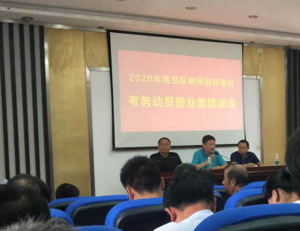 阳光招教,公平择优。7月31日上午,南岳区公开招聘教师笔试考务工作会议在南岳区第一中学科技楼(区委党校)多媒体教室召开。区委组织部、区纪委监委、公安、教育、人社、卫健、财政等部门工作人员近百人参加会议。区人民政府副区长王志运同志出席并作了重要讲话。