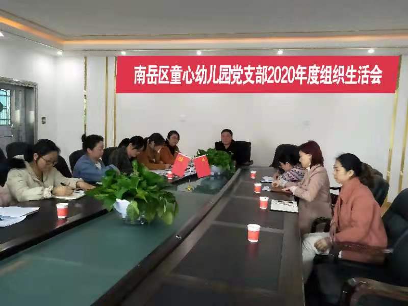 3月18日下午,南岳区童心幼儿园党支部在会议室召开了2020年度组织生活会。会上,该园支部书记向全体党员进行了述职,代表班子从工作中存在的问题、原因剖析、下步努力方向和整改措施三个方面进行对照检查发言。全体与会党员本着实事求是的原则,敞开思想,沟通交流,从强化大局意识、服务意识,优化育人环境,进一步转变作风,加快幼儿园更快更好发展等方面为出发点,进行了评议。