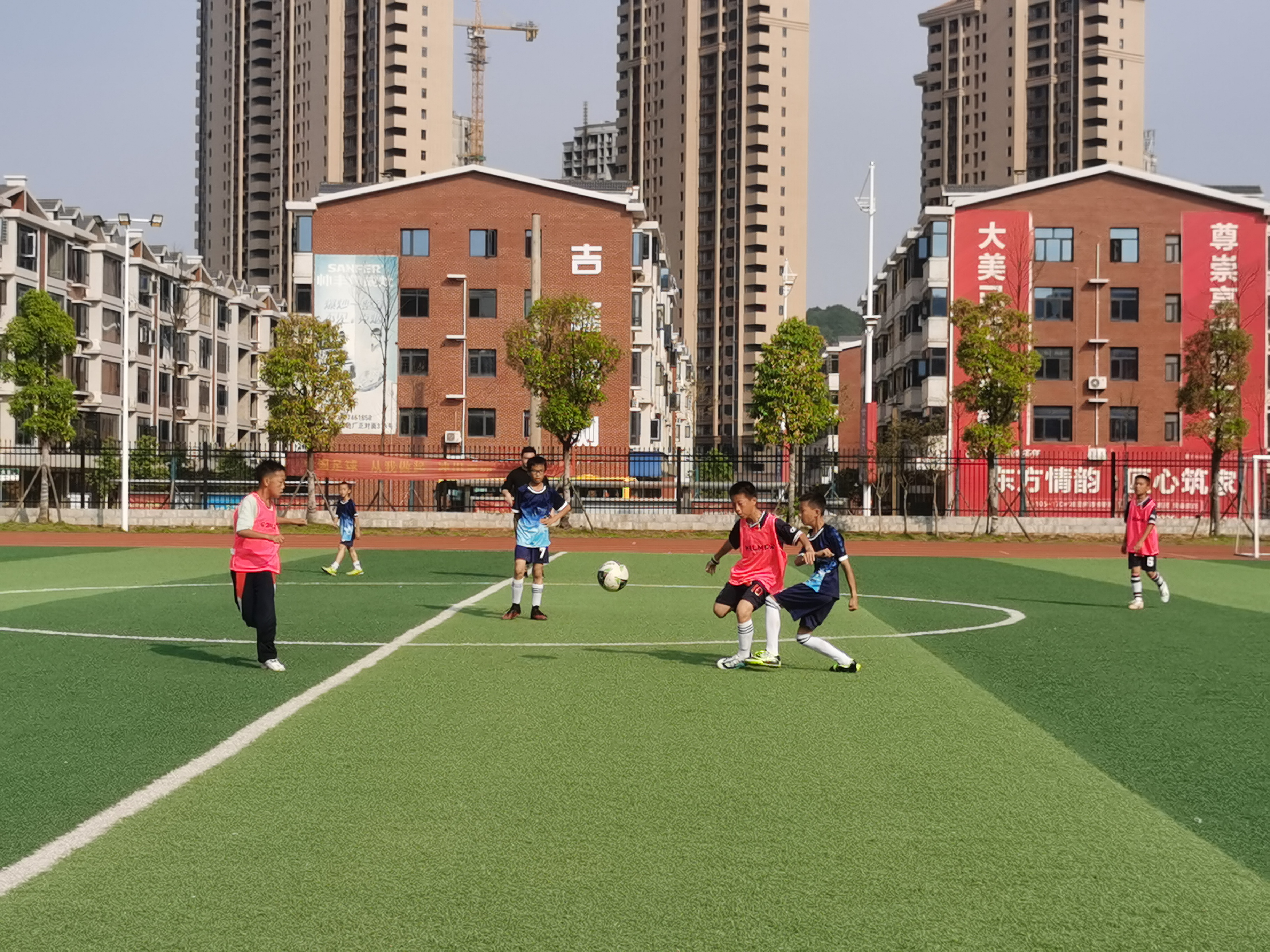 为让学生在“双减”政策的阳光下健康、快乐成长,推进校园足球运动蓬勃发展,5月6日下午,南岳区金月完小和衡山县景贤小学两支足球队在田径场开展了一场精彩的足球联谊赛。