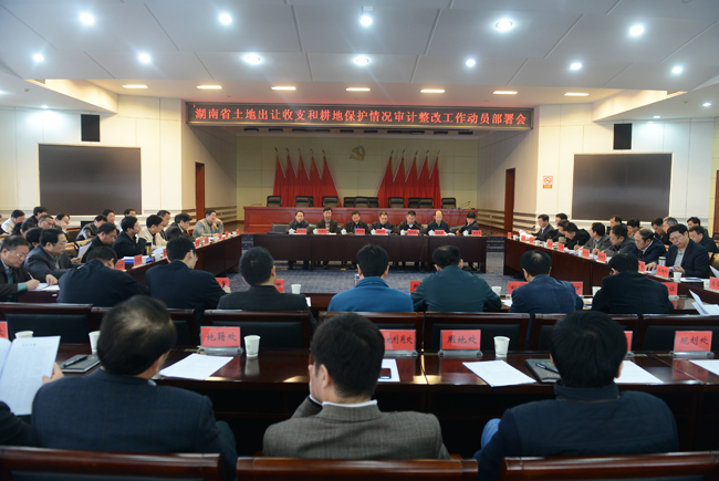 会上,省厅党组成员、副厅长王善明通报了全省土地出让收支和耕地保护审计的有关情况,并结合国土资源部门的职能职责,就审计发现的土地管理问题的整改工作作出安排。省财政厅、省发改委、省农委分别按照职责分工通报了国家审计署对我省2008—2013年土地出让收支和耕地保护审计的有关情况,对部门省本级和市县审计整改工作做出具体安排部署。省审计厅副厅长方再启对全省审计整改工作提出了具体要求。长沙、衡阳、株洲等9个市人民政府就落实整改工作作表态发言。