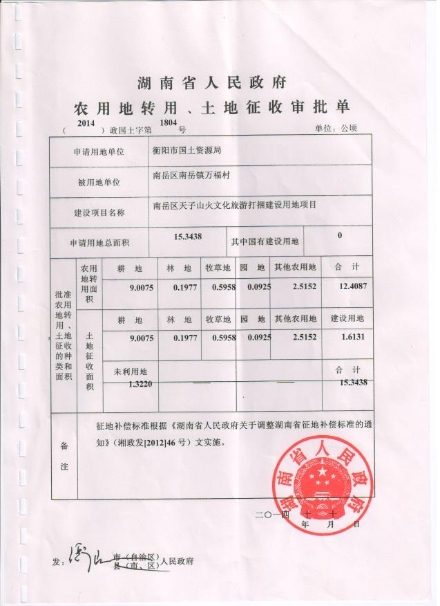 南岳区天子山火文化旅游打捆建设用地项目