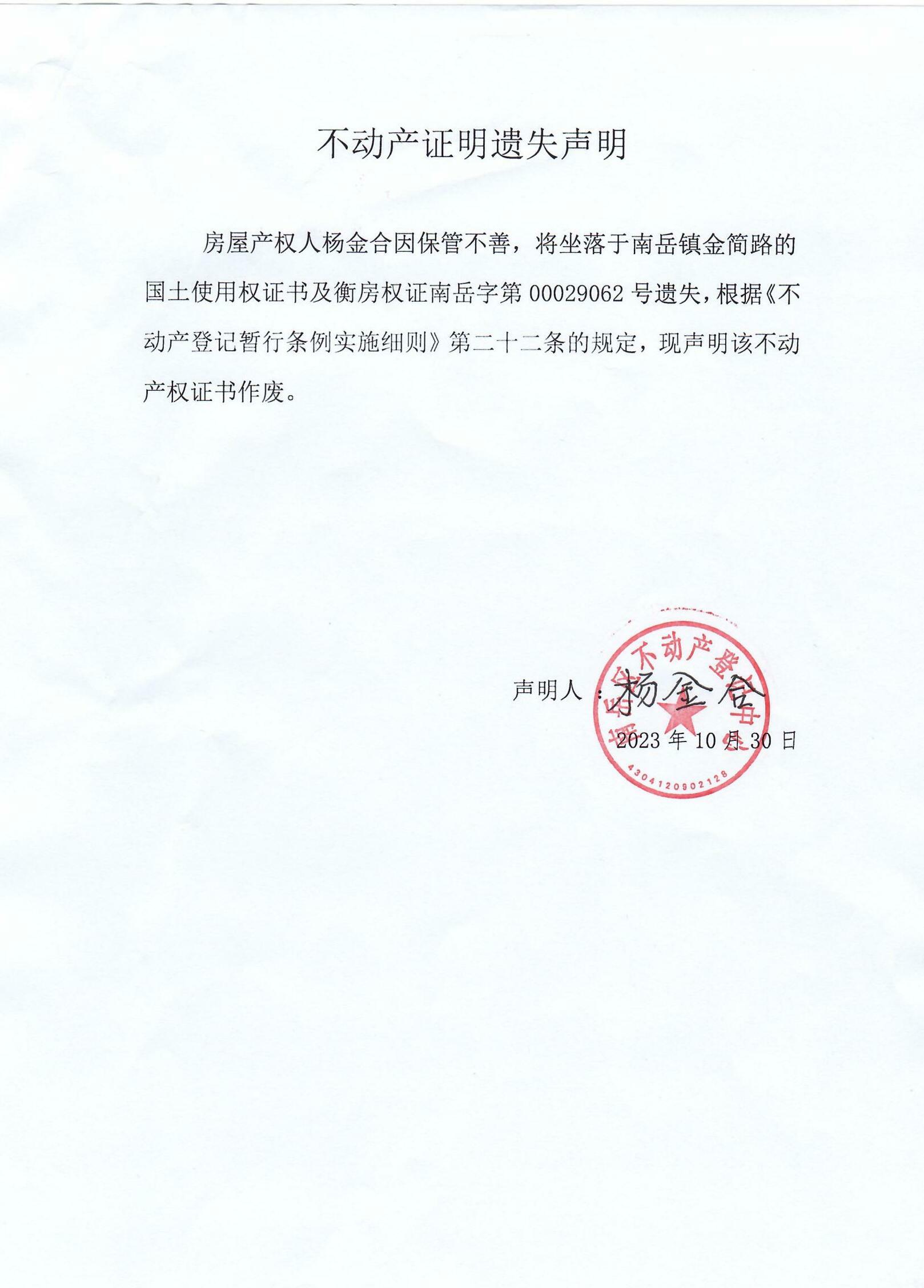 不动产证书遗失声明