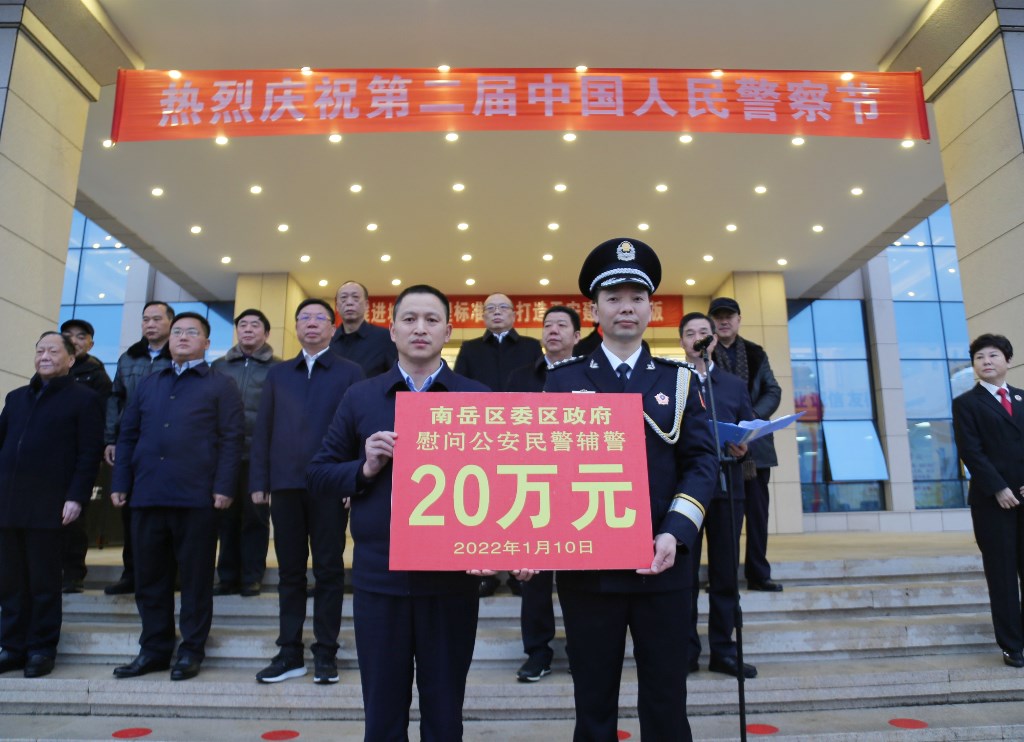2022年1月10日是第二个中国人民警察节,也是第36个“110宣传日”,为深入贯彻落实党的十九届六中全会、习近平总书记重要讲话重要训词精神和省、市党代会精神,庆祝中国人民警察节,更好地展示南岳公安形象、凝聚精神力量、提振警队士气、丰富警营文化,南岳分局于1月10日早上隆重举行第二届“人民警察节”庆祝活动。区委书记刘浪,区委副书记、区长蒋炳炎,区委副书记李健,区人大常委会主任刘军,区政协主席魏仲文,区委常委、政法委书记谭建红,区人大副主任蒋和平,副区长、公安局长陈细柳,区政协副主席周智毅,区法院院长李湘银、区检察院检察长凌立新,以及区政法委、司法局等相关负责同志出席活动。活动由谭建红同志主持。