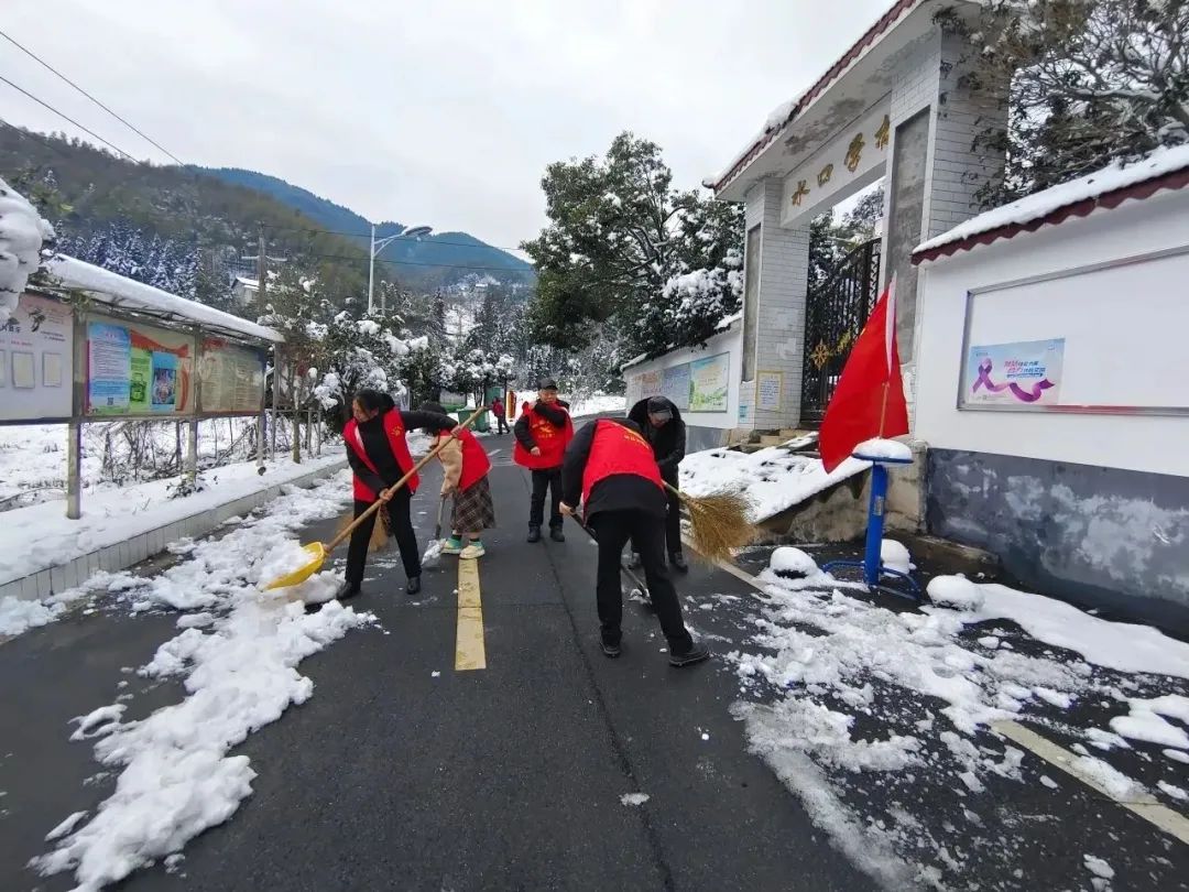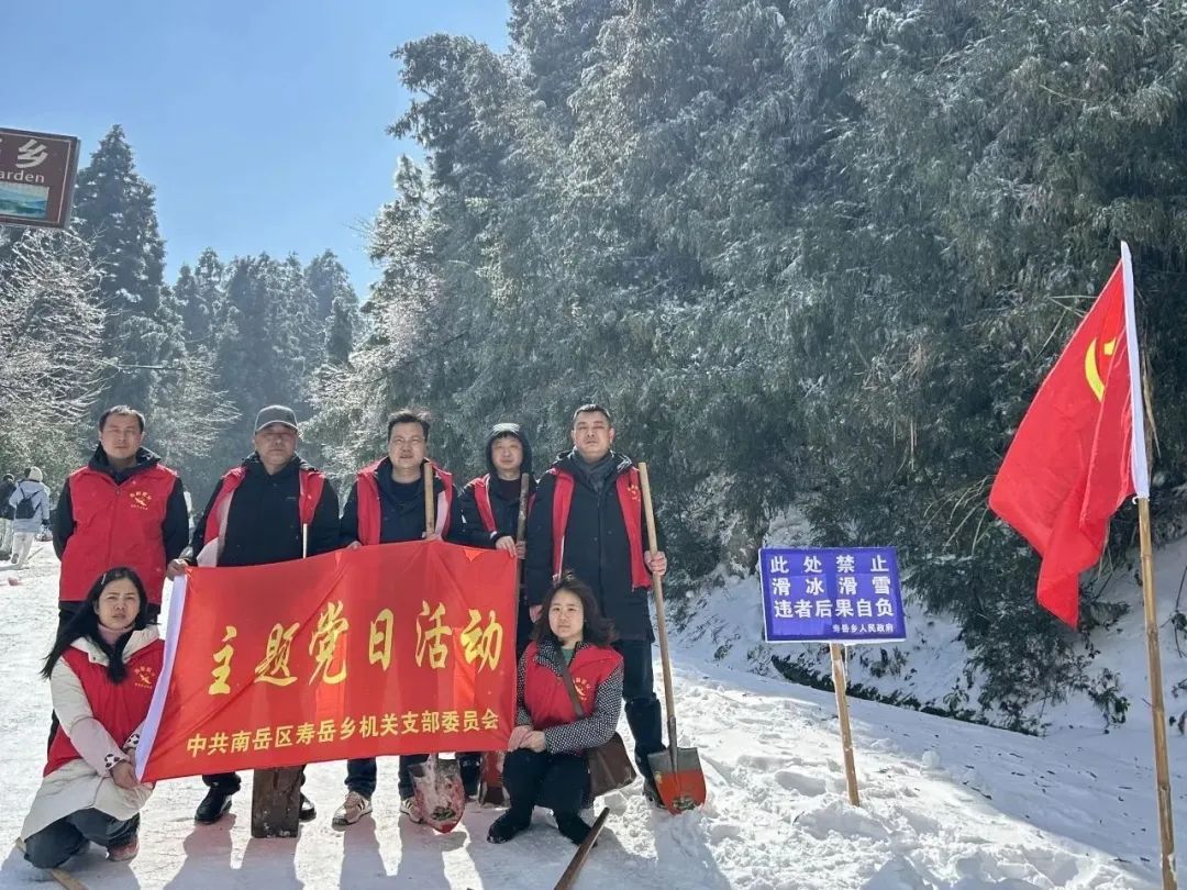 下雪是景,除雪是情。面对这场突如其来的"白色挑战",寿岳乡党委迅速响应,组织各党支部以坚定的责任感和无私的担当精神,投身到抗击冰雪的第一线,确保道路交通安全。