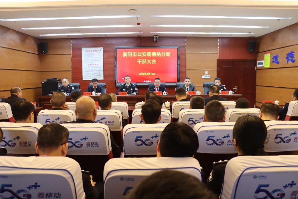 3月12日上午,南岳公安分局召开干部大会。市公安局党委委员、副局长陈细柳,区委常委、政法委书记段平华、区政法委常务副书记尹晖、区委组织部常务副部长熊水球,市公安局政治部人事科副科长杨宏伟出席会议。