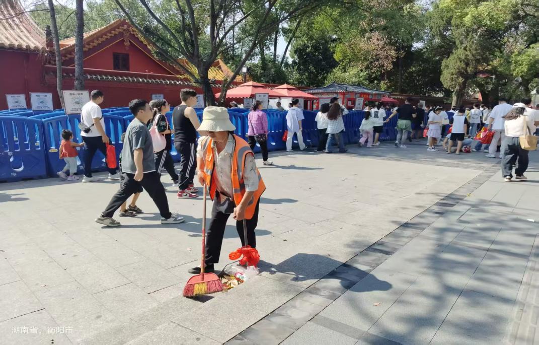 秋风送爽,丹桂飘香。国庆中秋双节期间,南岳迎来了客流高峰,环卫工作压力骤增,为了营造干净、整洁、优美的市容环境,南岳区环卫所提前安排部署,持续、动态做实做细各环节工作,南岳400余名环卫工人坚守岗位,用辛勤的汗水和脚步丈量着每一个角落,守护着城市的整洁与美丽。