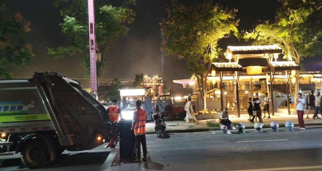 精准调度,畅通垃圾转运"经脉"。针对双节期间垃圾量激增的特点,提前安排部署垃圾清运工作,动态优化清运路线与作业时间,科学调配车辆与人员,大幅提升清运频次,全力保障城区生活垃圾、餐厨垃圾日产日清。