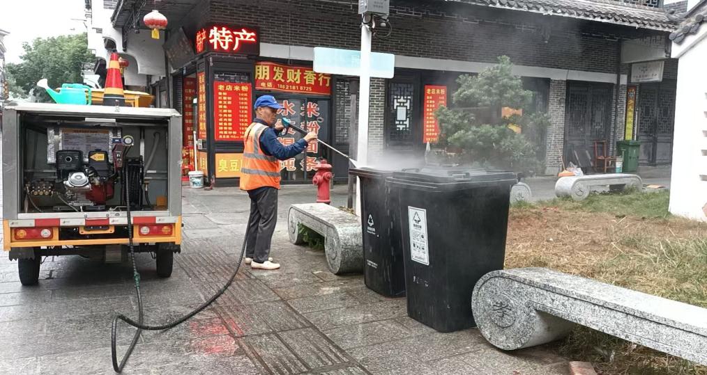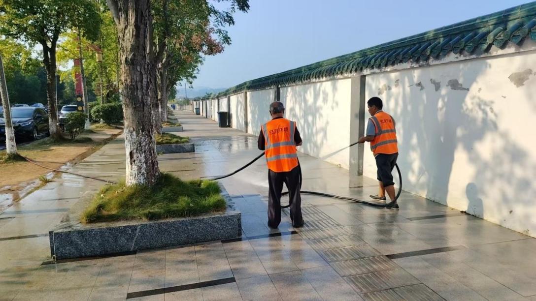精耕细作,提升道路洁净"颜值"。双节期间,在城区各重要区域、人流密集路段合理增派清扫保洁与垃圾清运作业人员,强化协同配合;加强对果皮箱、钢化桶、公交站台的擦洗工作,确保城区主次干道、公共场所及各类环卫设施始终保持干净整洁。同时,加大高压冲洗车、洒水车等机械化设备作业频次,做到主次干道见本色。