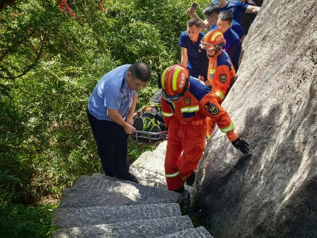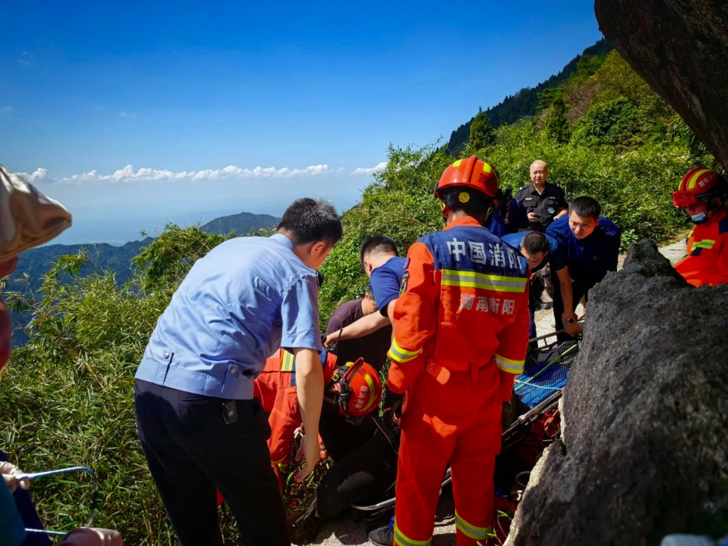 时间一分一秒流逝,不知不觉救援已持续整整15小时。次日正午12时,一声呼喊撕裂沉寂:“找到了!”在祝融峰一侧陡峭山坡下,失联的胡某终于被发现了——他蜷缩在岩壁间,意识模糊,但胸口尚有微弱的起伏。“还有呼吸!”这句话让疲惫的队员们瞬间红了眼眶。