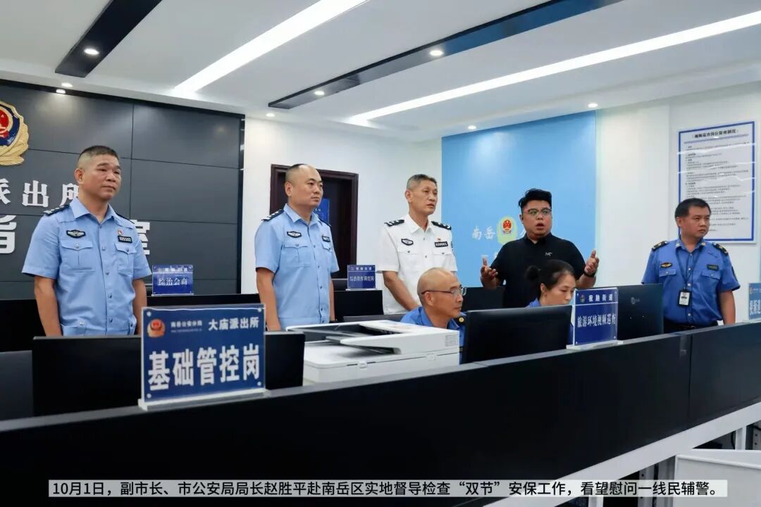 金秋时节,国庆、中秋双节如约而至。当大家沉浸在团聚的喜悦和旅途的惬意中时,那一抹“藏蓝”身影始终在线。南岳公安民辅警全警动员,围绕巡逻防控、疏堵保畅、旅游服务等方面精准发力,守护万家灯火,用坚守托举起节日的欢聚,向祖国书写平安祝福。