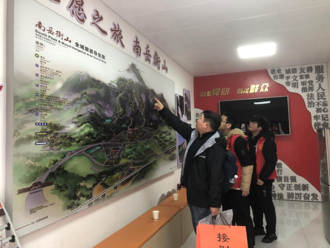 为保障游客游玩舒心、出行顺畅,祝融街道提前谋划、精心部署,在辖区景区周边、交通要道、人流密集区域设置志愿服务点位,为游客提供全方位服务。同时,针对景区停车难问题,免费开放办公点供游客停车,切实解决游客出行后顾之忧。面对低温阴雨天气,志愿服务队伍始终坚守岗位、履职尽责:衡岳社区青年志愿者在西街口为游客指引路线、答疑解惑;岳庙社区志愿者在庙东湿滑路段耐心疏导人流、提醒防滑避险,贴心守护游客出行安全;迎宾社区借助党建+旅游驿站,开展南岳全域旅游讲解和休息休憩、手机充电等志愿服务,全方位满足游客旅途需求。