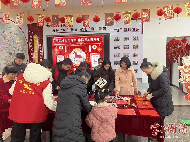 掌上衡阳2月26日讯(通讯员江漫 周琪全媒体记者莫雄飞)2月25日上午,南岳区祝融街道岳庙社区举办"清风拂面年味浓,廉润民心迎马年"清廉主题新春游园会,以年味为纽带,吸引辖区党员、居民踊跃参与,在欢声笑语中品年俗、学廉洁、聚合力。
