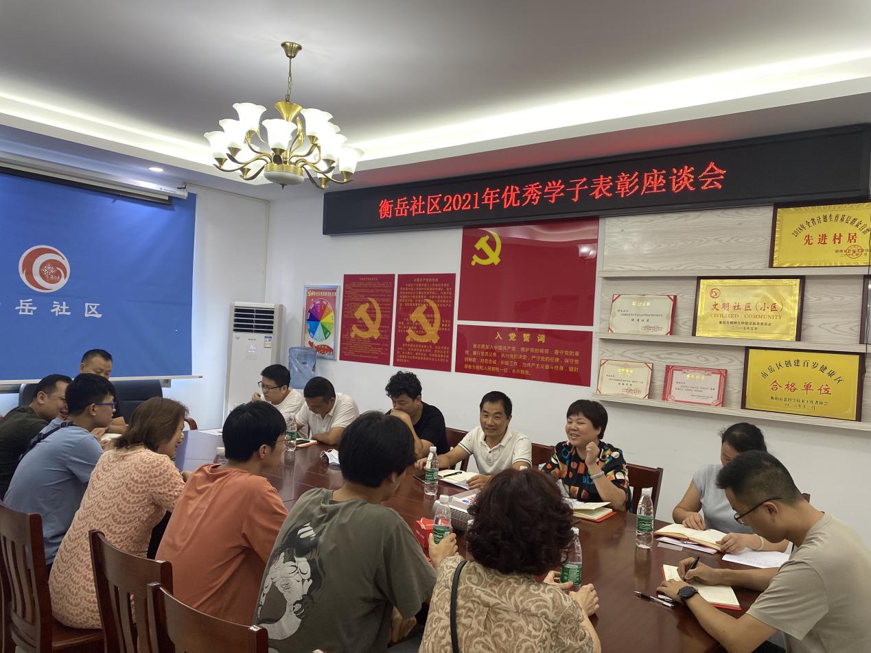 汗马耕耘有矢志,硕果飘香又一年。为进一步弘扬重视教育、重视人才的良好风气,激励广大青少年发奋学习、努力进取。8月30日,祝融街道衡岳社区召开座谈会,对本届考取重点院校的学子们进行表彰奖励。街道联点领导、社区两委及家长代表共计18人参会。