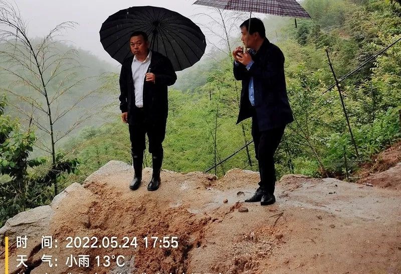 5月24日上午,副区长谭庆年组织自然资源、住建等部门对寿岳乡地质灾害防治进行雨中巡查和督查,对岳林村、龙池村等几处险情点提岀处置方案和要求。