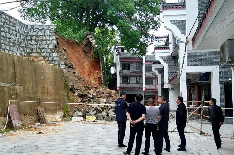 5月24日上午,南岳镇镇长胡银泉带队督查辖区各村、社区“汛期”防控值班值守机制,巡查各重要监测点、隐患点,并现场查看附三医院围墙风险隐患点险情。
