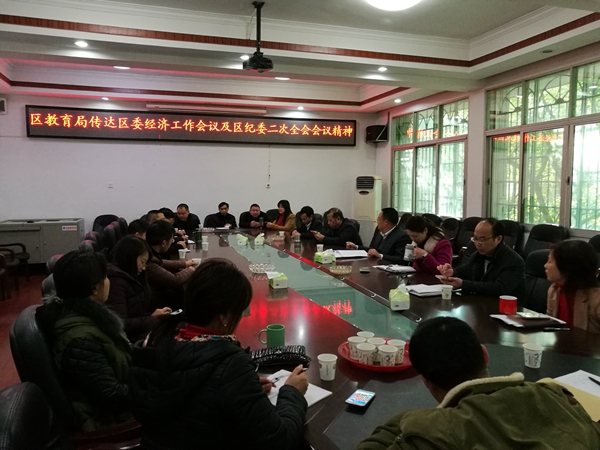会上,首先由王明海局长组织学习了区委经济工作会上区委曾建华书记的讲话精神和区委副书记、区长王燕的工作安排部署。随后,教育局党组成员、纪检组长朱桂娥传达了区纪委七届二次全会上区委书记曾建华的讲话精神和区委常委、纪委书记伍松代表区纪委所作的工作报告。