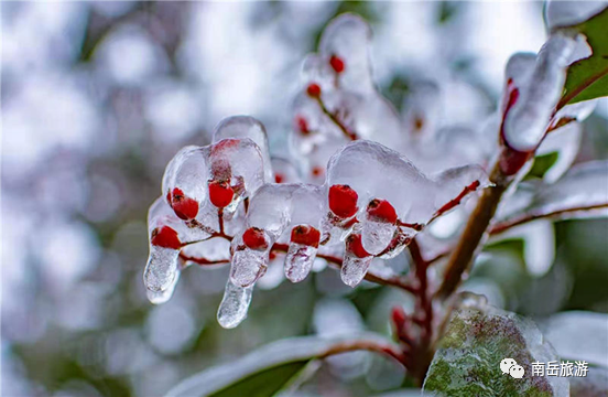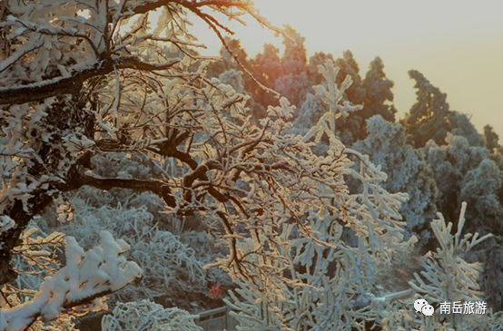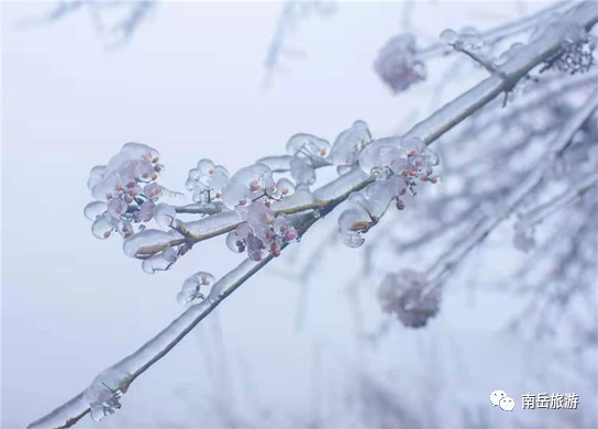 冰雪交融,在南岳形成了绝佳的景色,造就了晶莹剔透的雾凇布满南岳的奇观,万物都被一层霜雪覆盖,散发着无限魅力。
