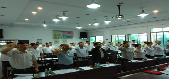 大会在庄严的国歌声是拉开帷幕,全体党员一起面向党旗重温了入党誓词。