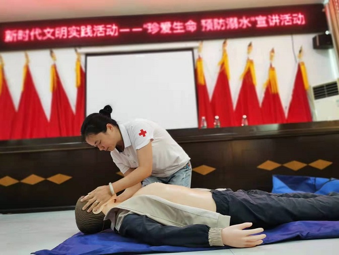 活动现场,首先播放了预防溺水警示教育专题片《珍爱生命 预防溺水》,视频中一桩桩实例,让孩子们意识到玩水原来是这么的危险。接着,邀请区红十字会专家为孩子和家长们讲授预防溺水安全知识讲座,向留守儿童及家长传授预防溺水、溺水后如何自救和救人等知识,还现场实地操演溺水急救、心肺复苏、异物梗塞解除等一系列救治措施,家长和孩子们都很有兴趣的随同专家模仿救治动作。最后,还为孩子们送上了书包、风扇、水杯、健康包、免费健康检查体检表和防暑药品等。