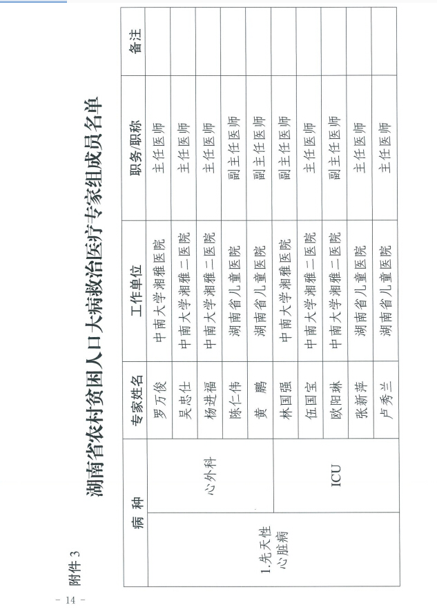 关于印发湖南省农村贫困人口大病专项救治工作实施方案的通知