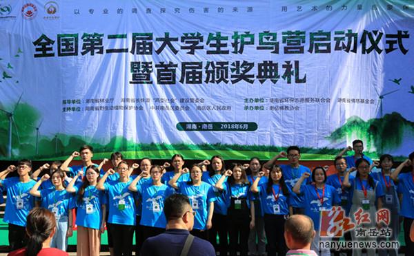 在活动现场,区委常委、统战部长黄顺发出席活动并致辞,全国人大代表、湖南省佛教协会会长圣辉大和尚宣布全国第二届大学生护鸟营启动。来自全国100多名志愿者向候鸟宣誓,省林业厅领导向9支大学生队伍授旗,省佛慈基金会为湖南候鸟保护项目和长沙野生动物救助项目分别捐赠15万元和5万元,南岳佛教协会为全国大学生护鸟营项目捐赠8万元。区人大常委会副主任释怀辉、区人民政府副区长旷诗秦等为受表彰的岭南师范学院羽扬鸟社等全国首届大学生护鸟营优秀团队颁奖。同时,南岳衡山国家级自然保护区管理局组织的候鸟等野生动物保护工作成果图片展览吸引了很多游客前来围观。仪式结束后,来自南岳的环保志愿者和全国大学生护鸟营营员还走进景区,向游客和当地居民发放爱鸟护鸟倡议书和宣传折页。