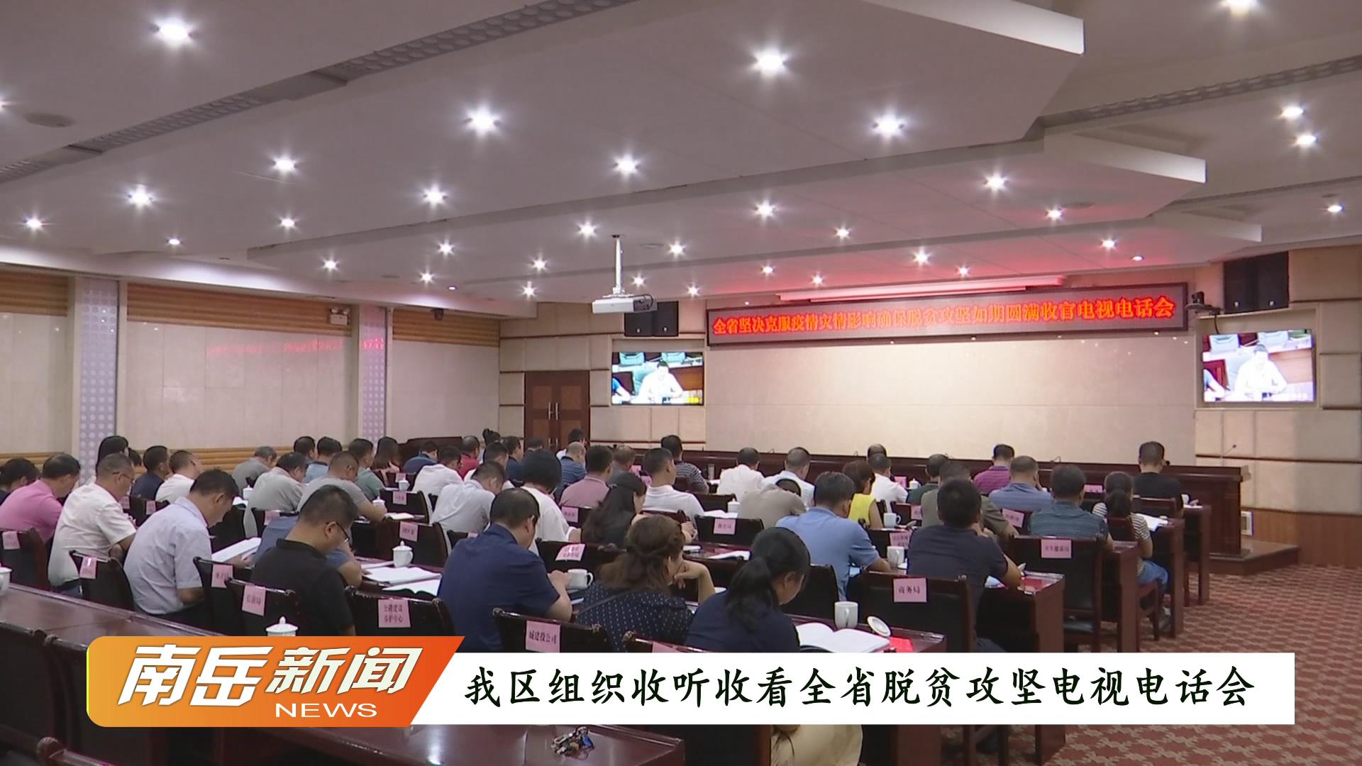 8月27日上午,全省坚决克服疫情灾情影响确保脱贫攻坚如期圆满收官电视电话会在长沙召开,省委副书记乌兰出席并讲话,号召全省各级各部门全力克服疫情灾情影响,保持拼劲韧劲,精准补齐短板,确保脱贫攻坚实现圆满收官。区委书记曾建华、区委副书记李健在南岳分会场收听收看电视电话会议。