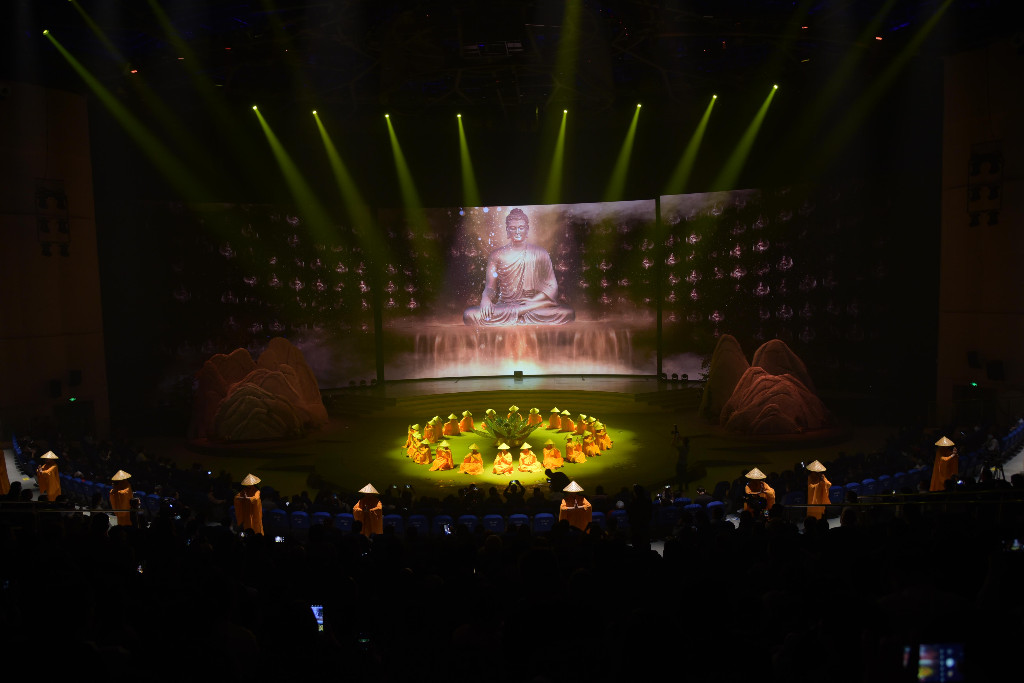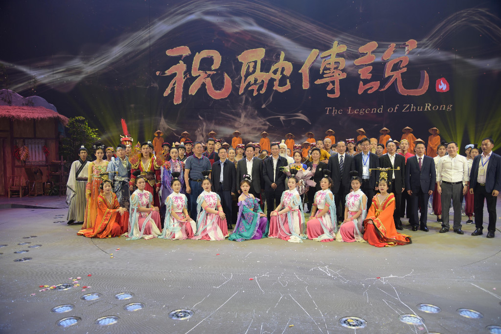 启动仪式后,《祝融传说》进行了首演。《祝融传说》以“火神”祝融为主题,以南岳朝圣为主线,融入“磨镜台”与“魏夫人”等典故,浓缩了南岳衡山数千年的经典传奇和儒释道三教并存的历史文化。演出巧妙运用人屏互动,结合舞蹈、戏曲、武术、杂技等表演,讲述了一支朝圣队伍前往南岳衡山祈福,一路千辛万苦,奇遇不断,荣得佛家点悟,幸得道家赐福,喜得祝融庇佑的故事。