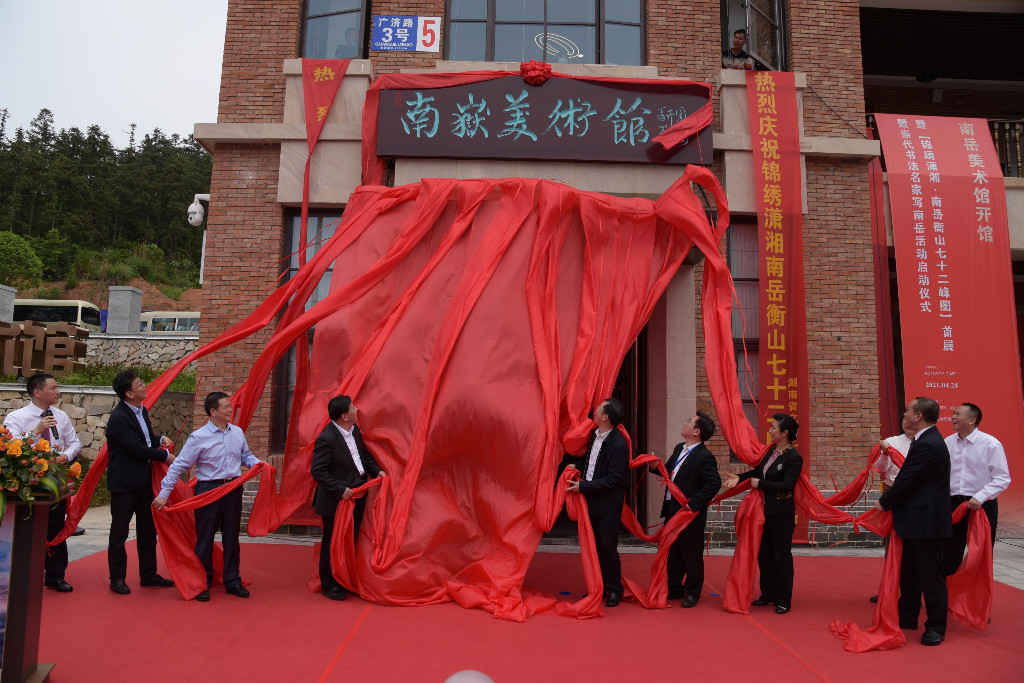 当日,南岳区美术馆揭牌开展。据悉,由湖南省美协副主席王金石老师领衔创作的美术长卷《锦绣潇湘·南岳衡山七十二峰图》,是一幅描绘新时代民族复兴、繁荣富强的宏大画卷,是我省文艺宝库中的又一颗耀眼明珠,是南岳文化的新标高。