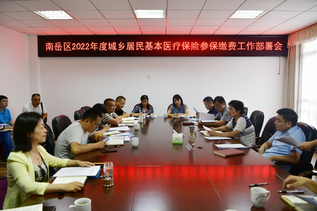 9月6日下午,南岳区2022年度城乡居民基本医疗保险参保缴费工作部署会议在区政府三楼会议室召开。区委常委、区政府党组副书记杨雪峰出席会议并讲话,区政府党组成员钟焰主持会议,各乡镇、街道与区直有关部门负责人参加会议。