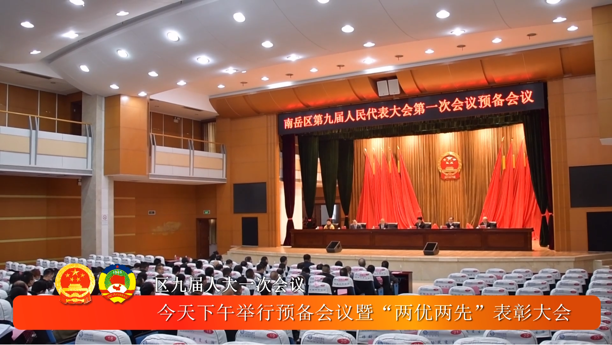 10月21日下午,南岳区第九届人民代表大会第一次会议举行预备会议暨“两优两先”表彰大会,区九届人大一次会议的各项筹备工作已基本就绪,将于明天开幕。