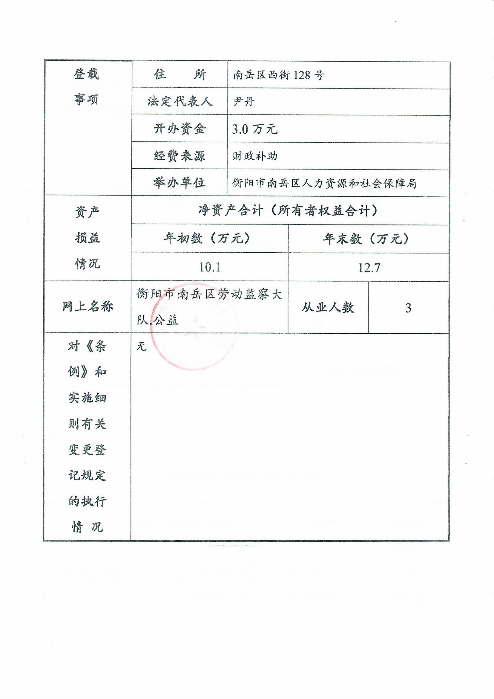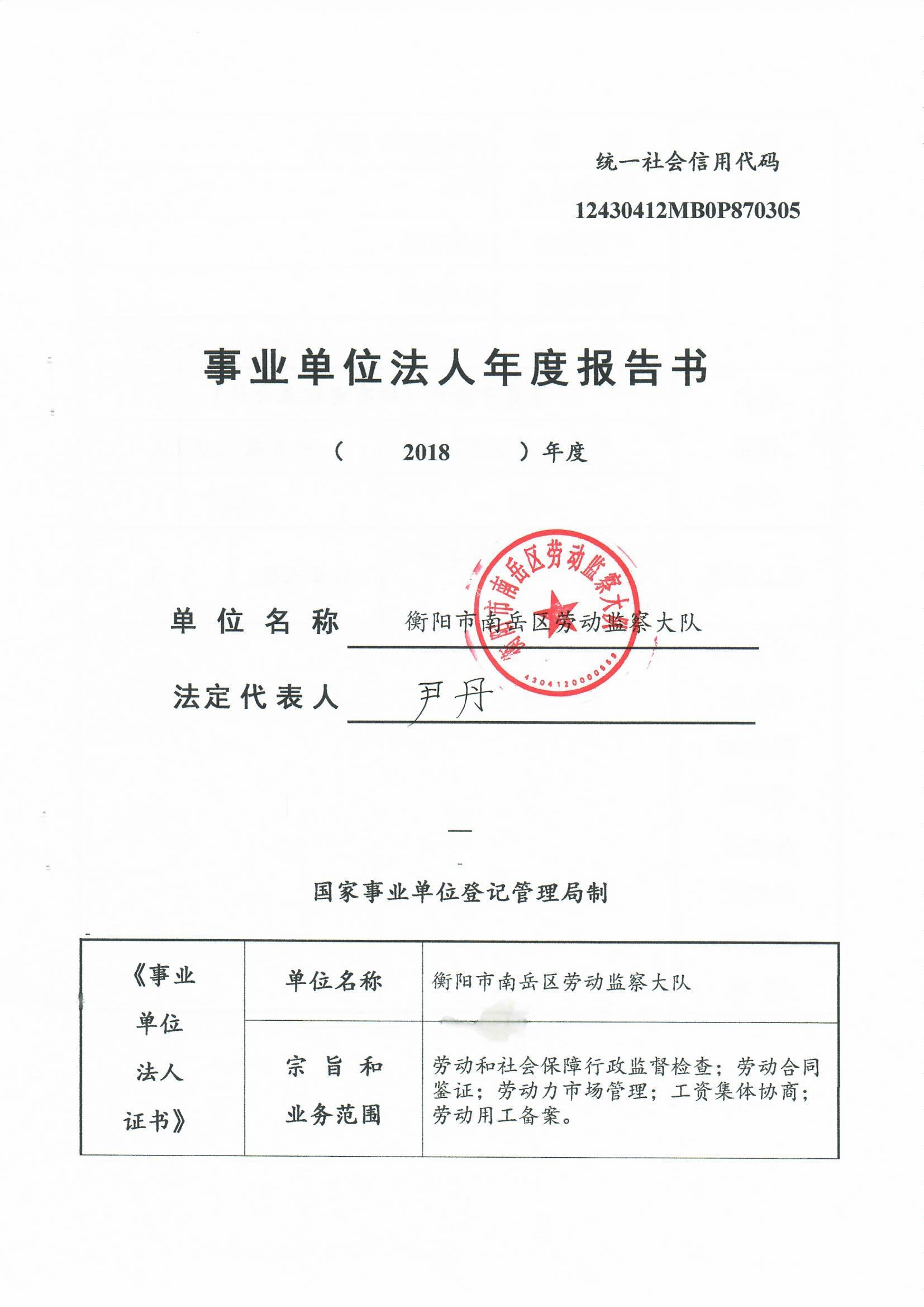 衡阳市南岳区劳动监察大队2018年度事业单位法人年度报告书