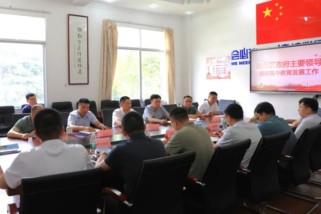 会上,蒋炳炎详细了解南岳高中教育工作、高中教学质量等情况,认真听取了高考、学考和中考“三考”工作及区一中办学情况汇报。